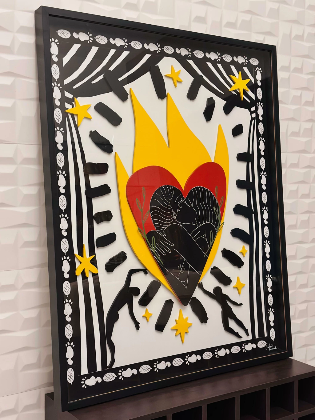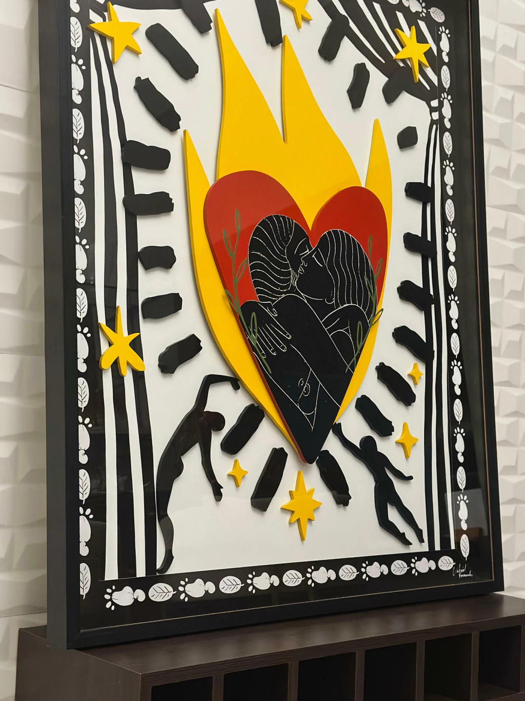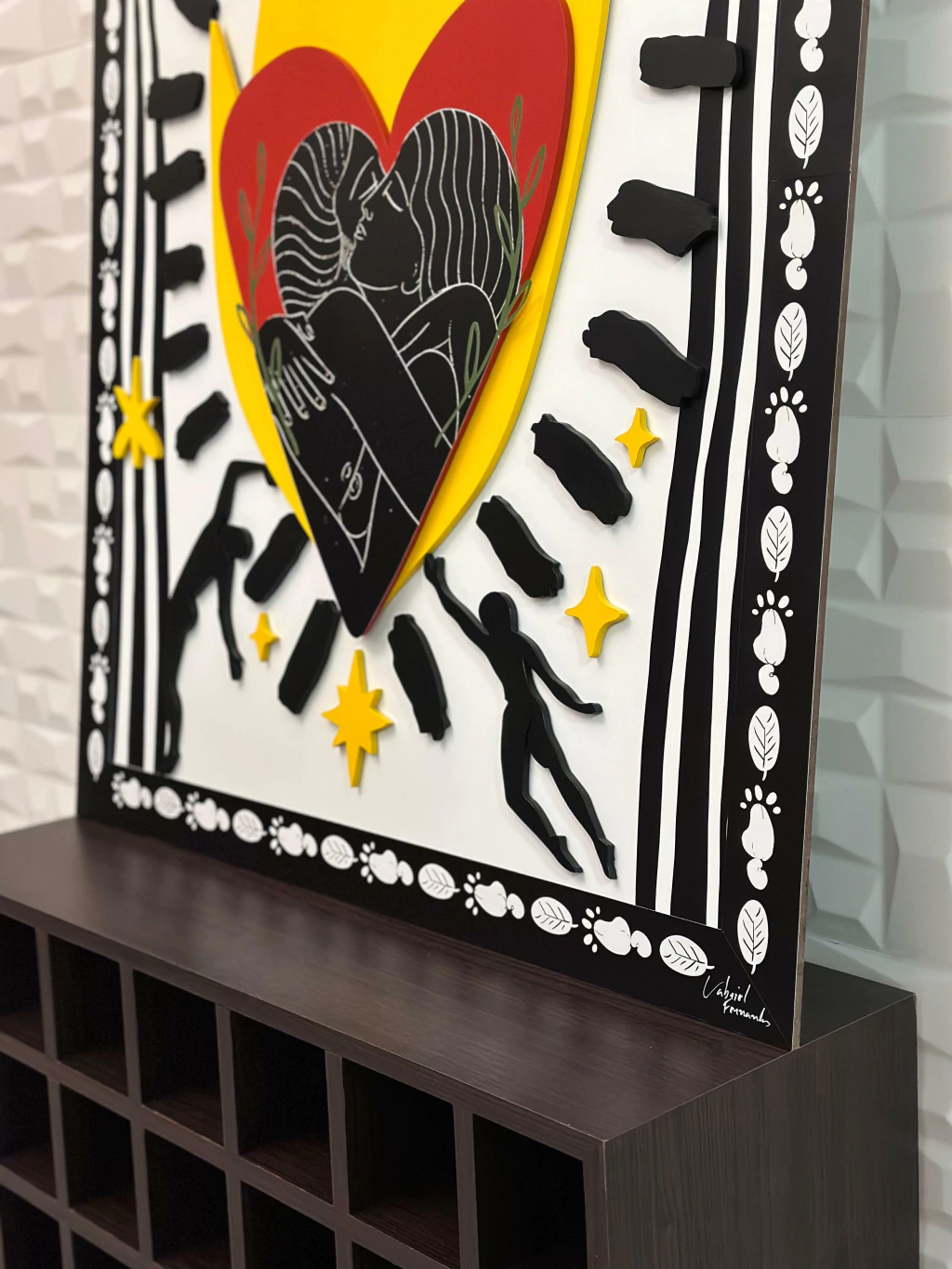 - A obra foi produzida em uma base de MDF 6mm, a tela possui alta resistência e acompanha moldura;