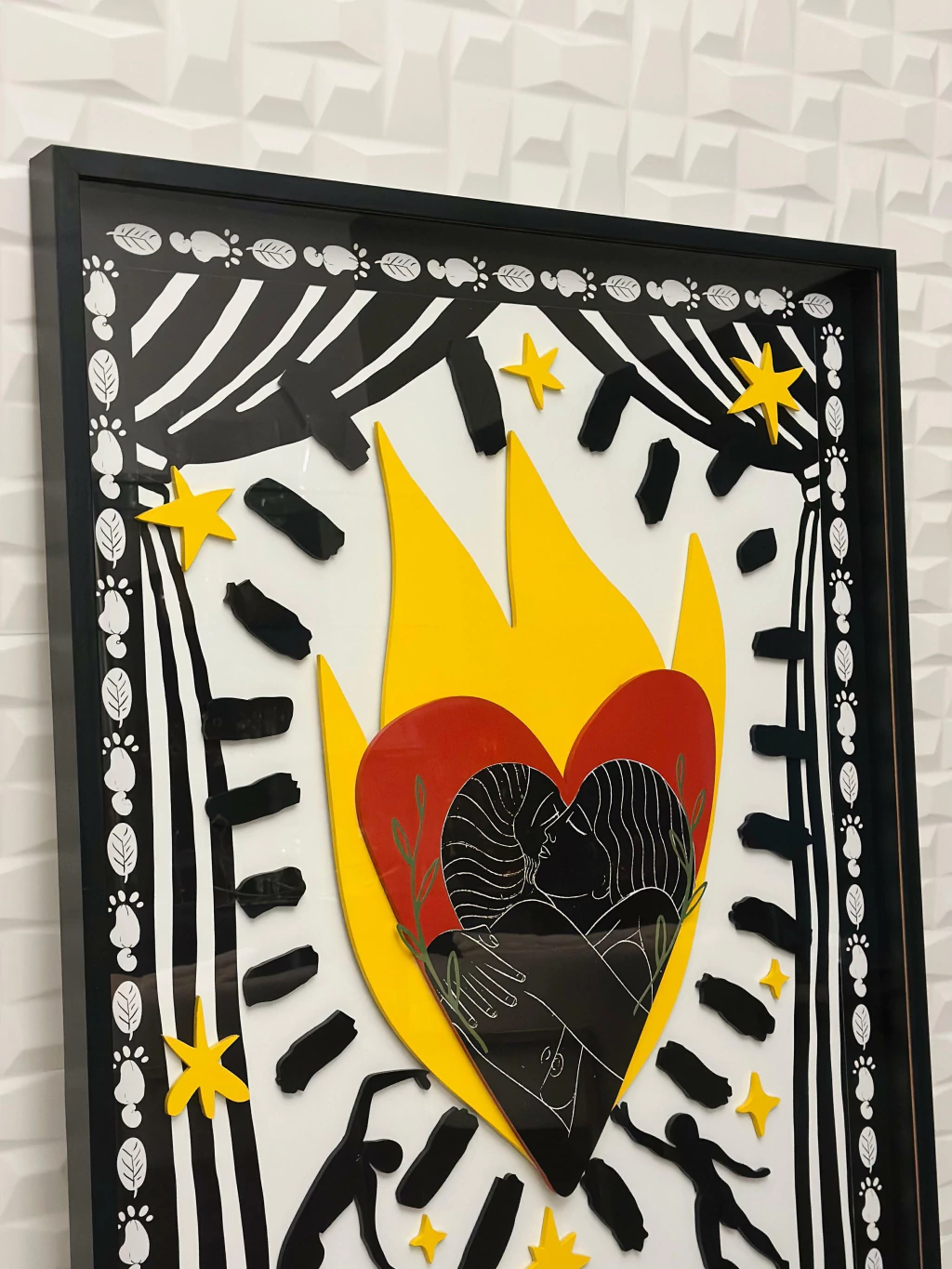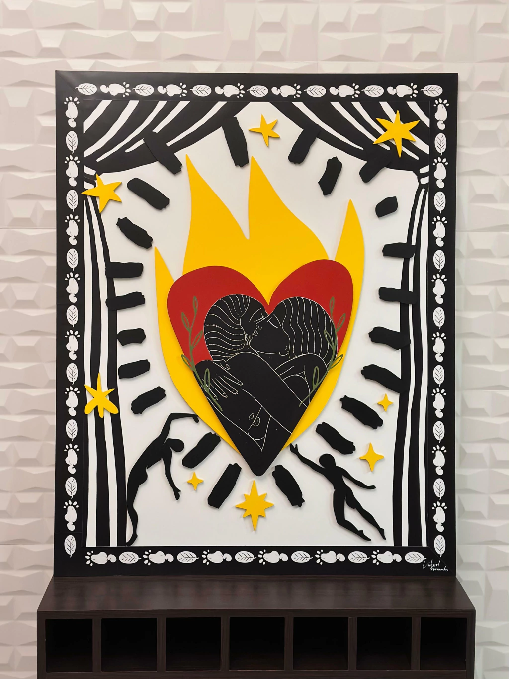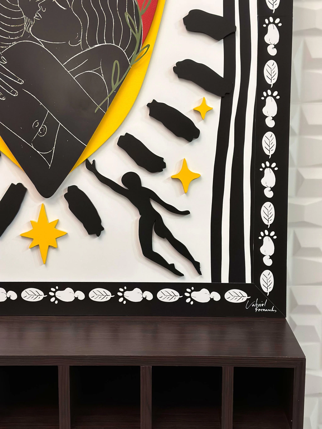- A obra foi produzida em uma base de MDF 6mm, a tela possui alta resistência e acompanha moldura;
