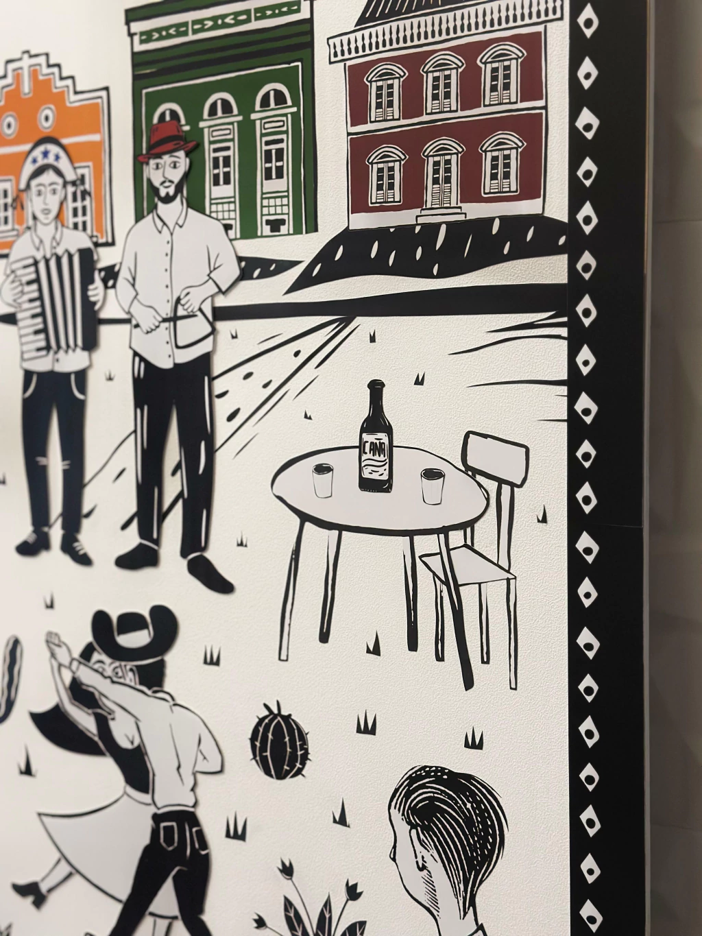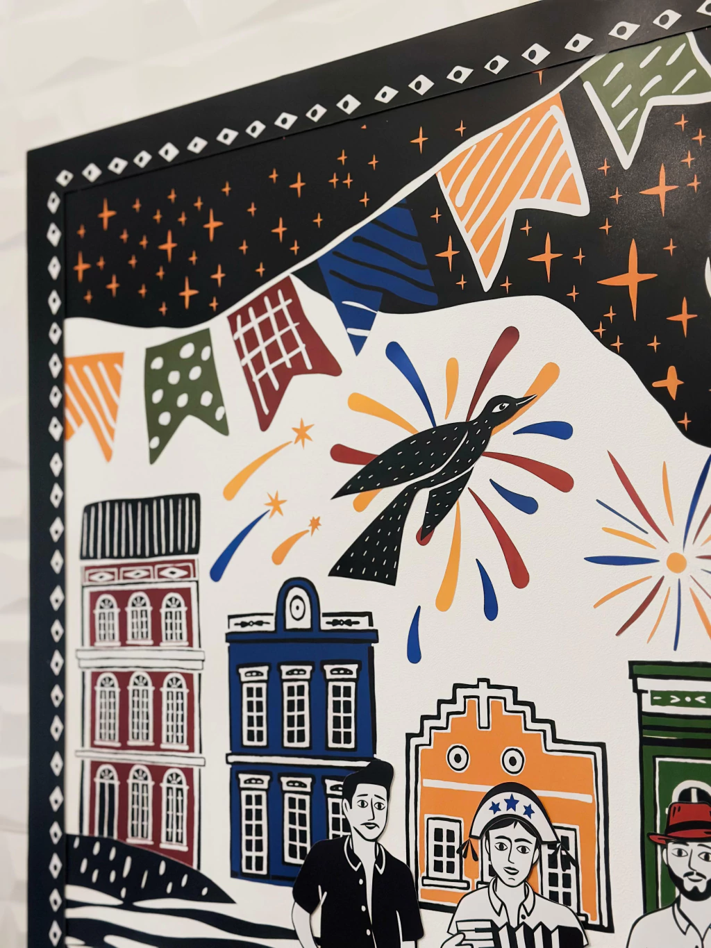 - Colagem totalmente manual, com técnicas do estilo “collage”;