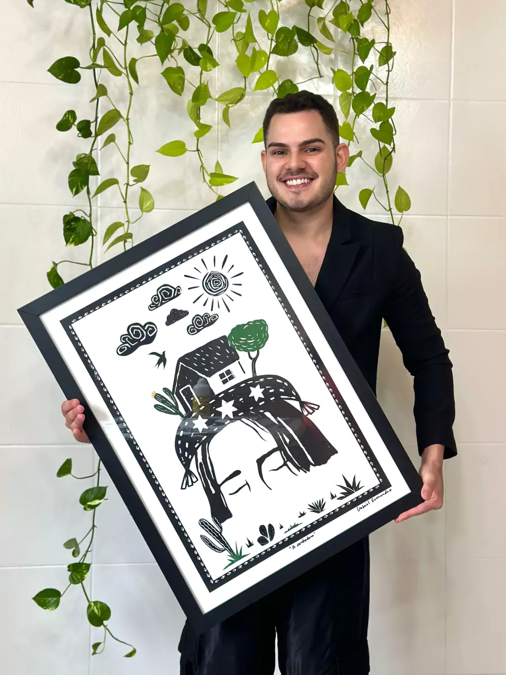 “Essa obra faz parte da série: ¨Biel à la cordel¨, criada com o objetivo de representar as minhas origens e raízes, inspirada na estética do cordel juntamente com a minha identidade na colagem .”
