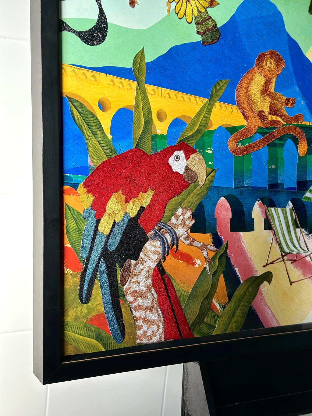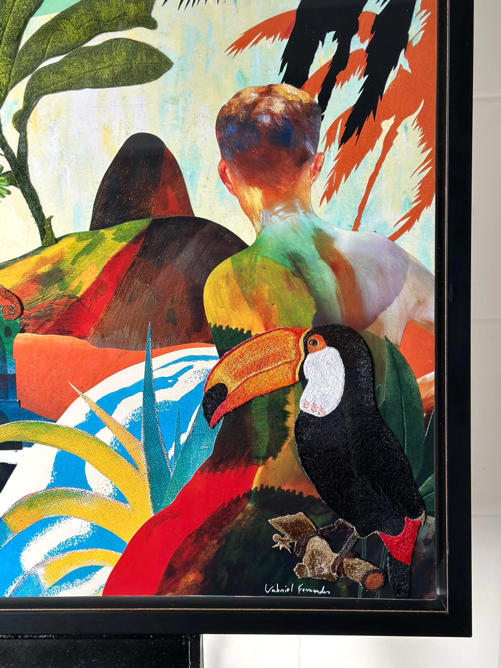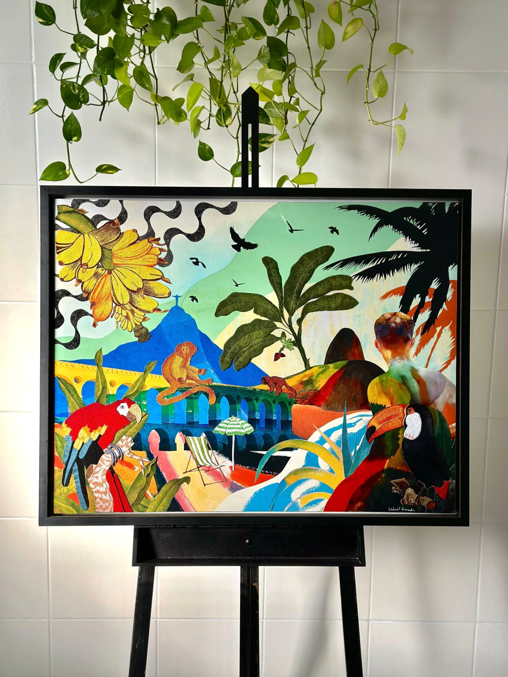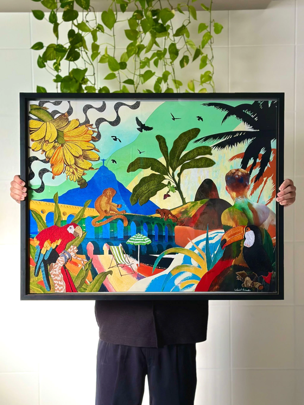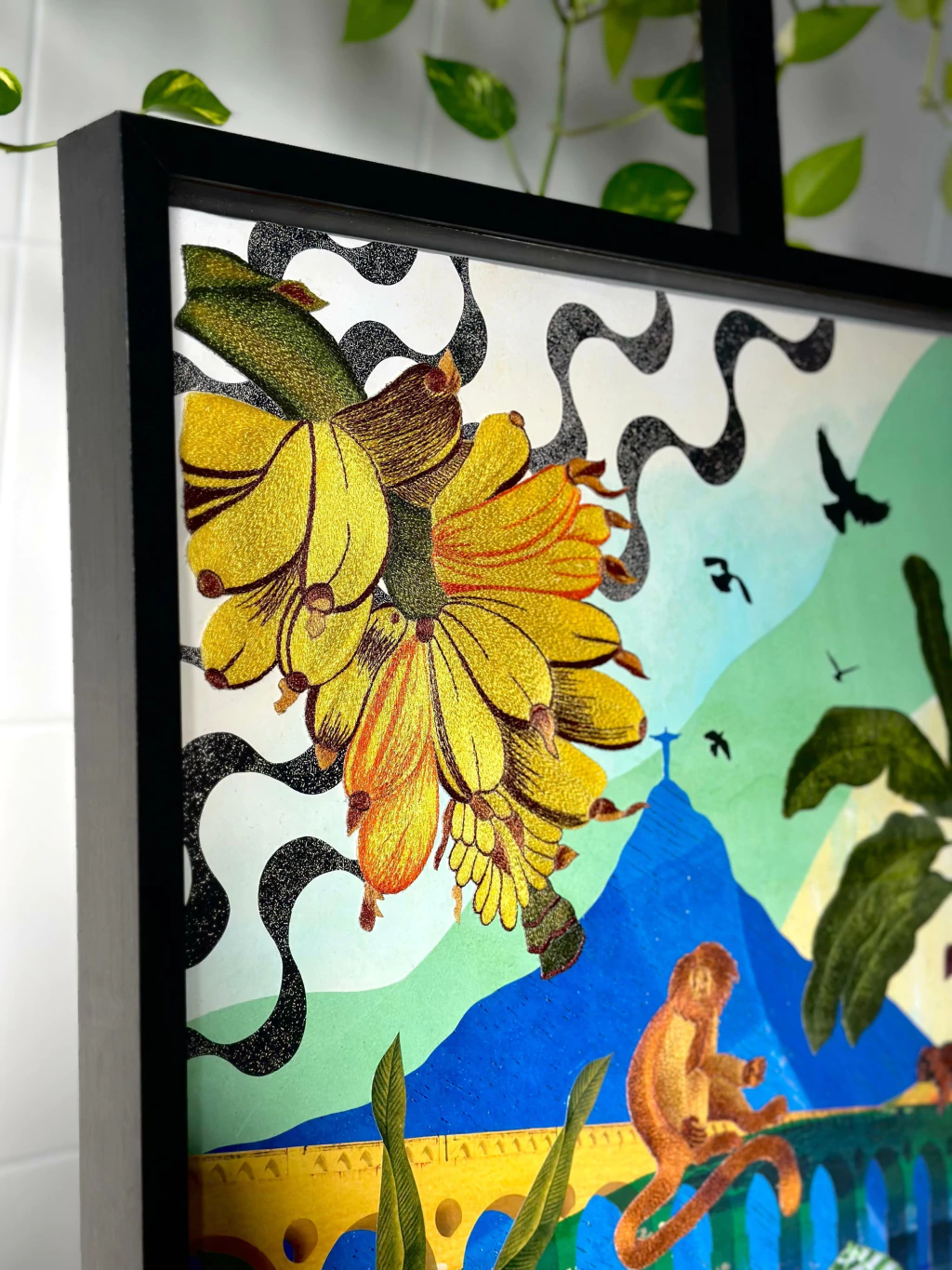 - A colagem foi desenvolvida em tela que possui suporte para encaixe na parede e estabilidade;