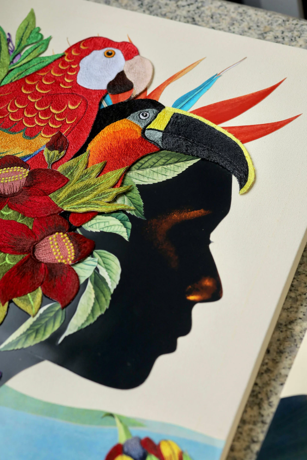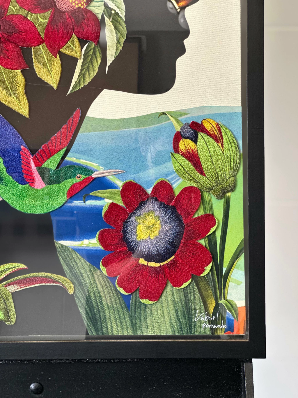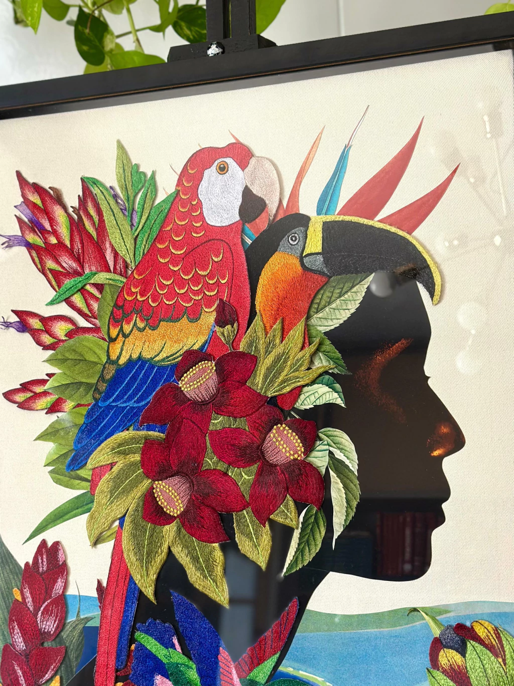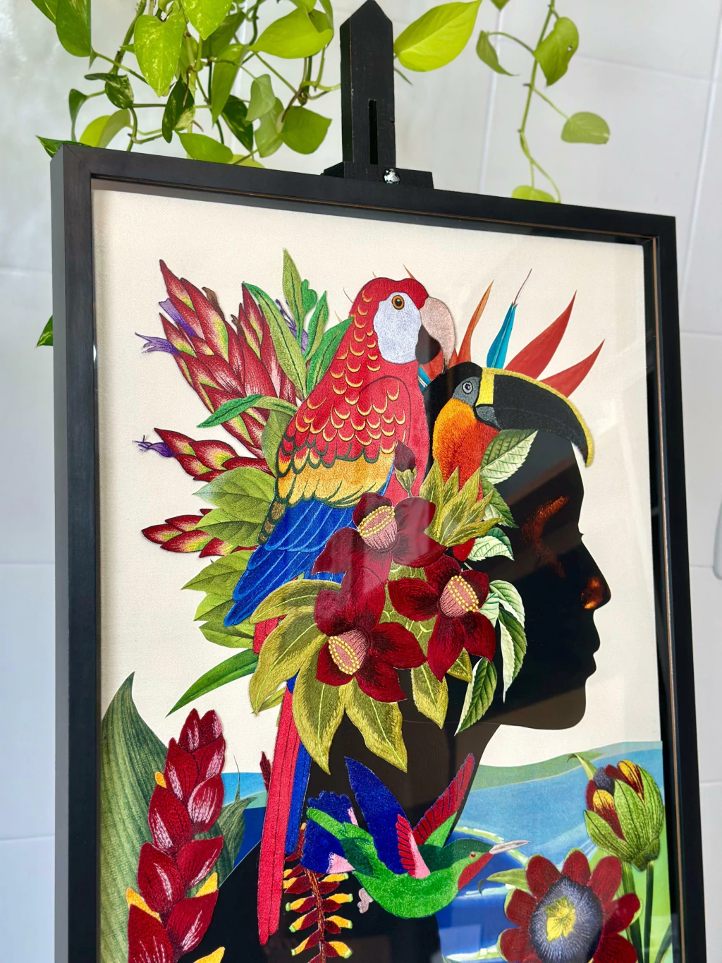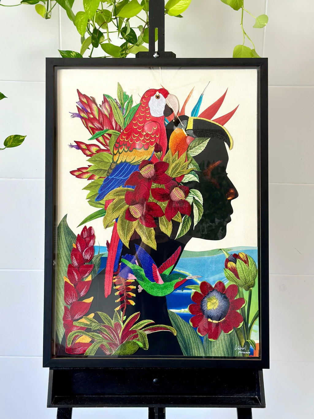 - A colagem foi desenvolvida em tela que possui suporte para encaixe na parede e estabilidade;