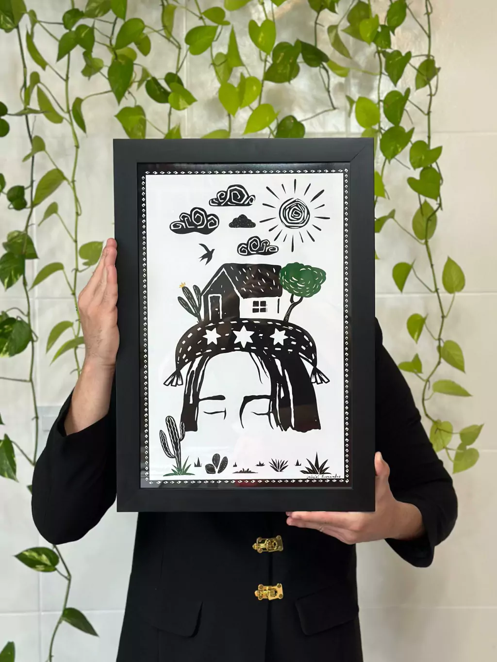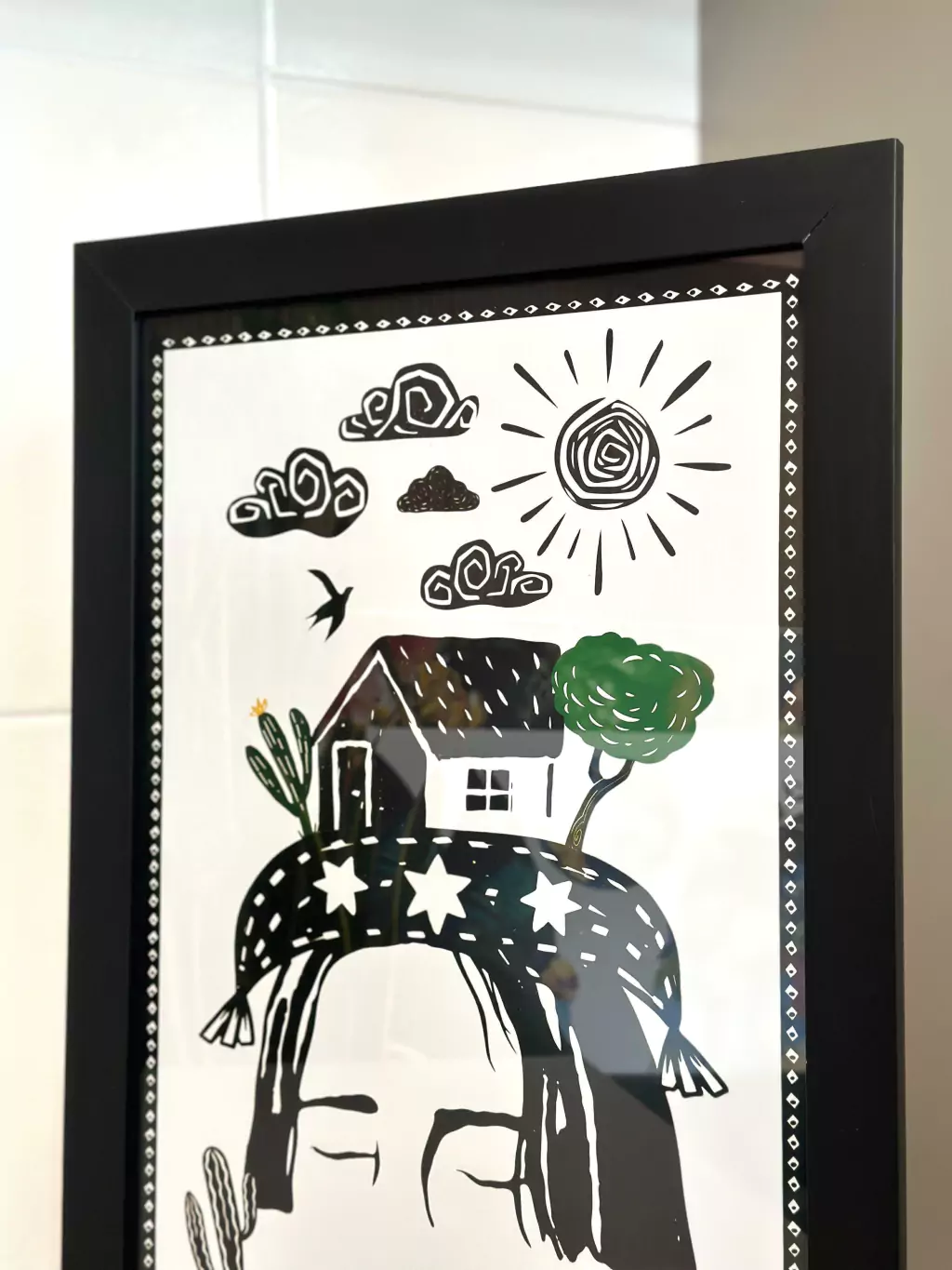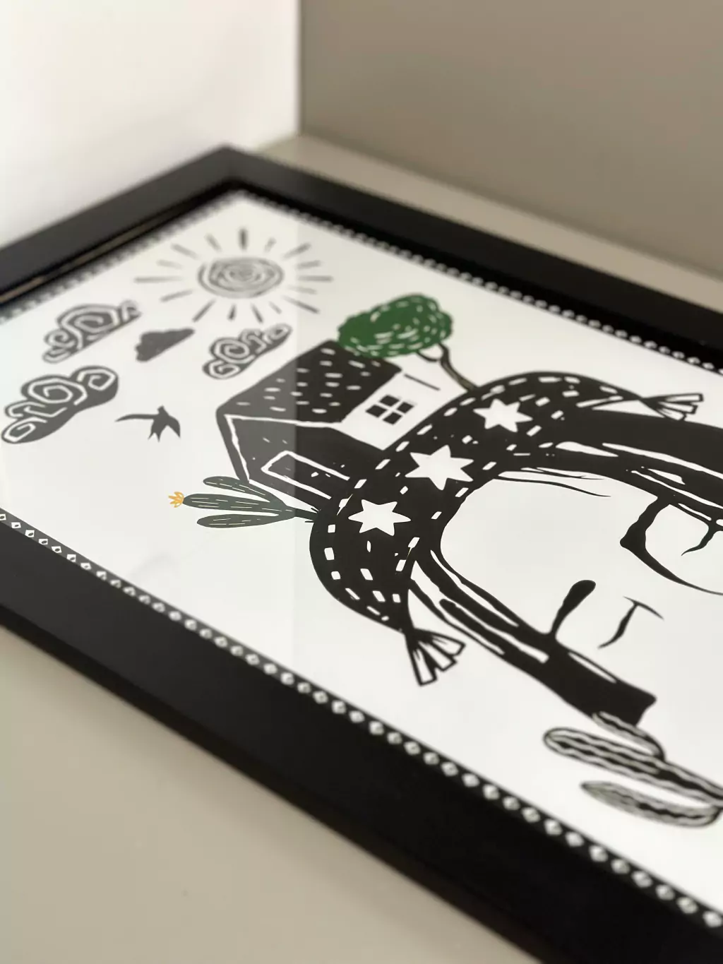 - Para garantir a durabilidade, a arte emoldurada com vidro garante sua proteção contra as agressões externas.