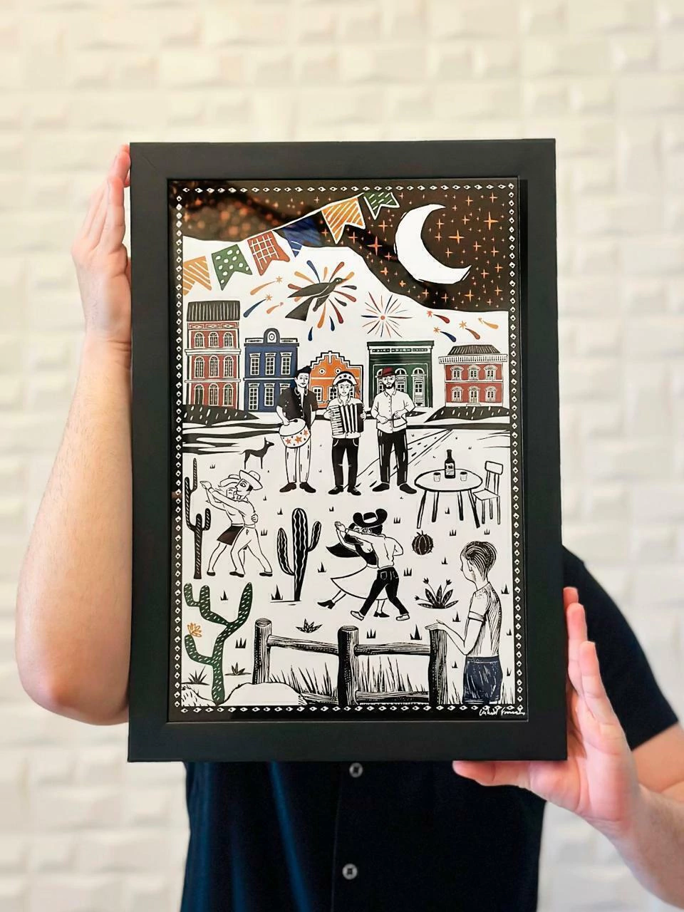 - Para garantir a durabilidade, a arte emoldurada com vidro garante sua proteção contra as agressões externas.